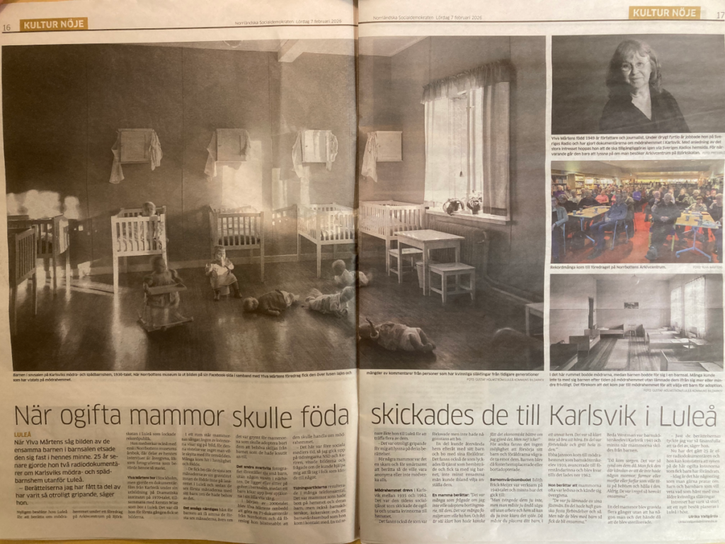Eva Marie Svensson intervjuade mig efter föredraget den 29.1. här kan du lyssna på reportaget: http://www.norrbottenstaltidning.se/norrbottens-taltidning-nummer-5-vecka-14-2026/modrahemmet-i-karlsvik